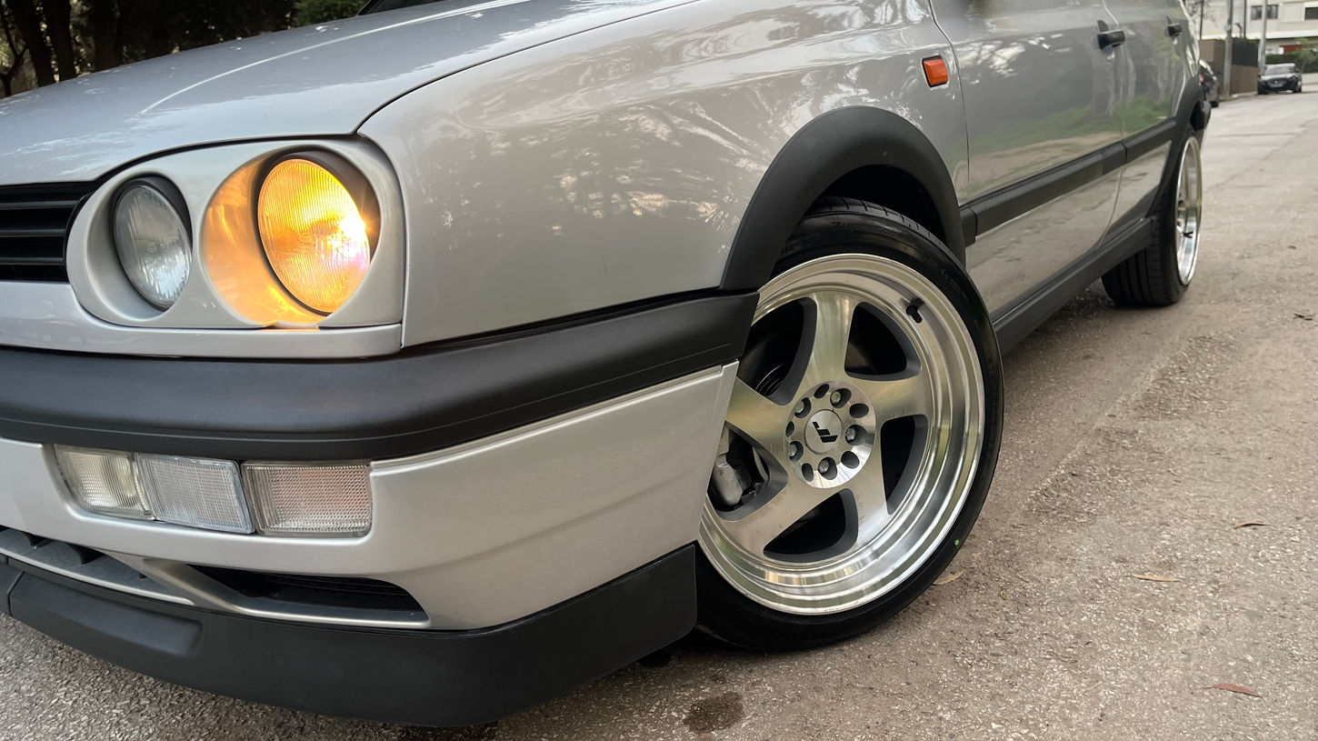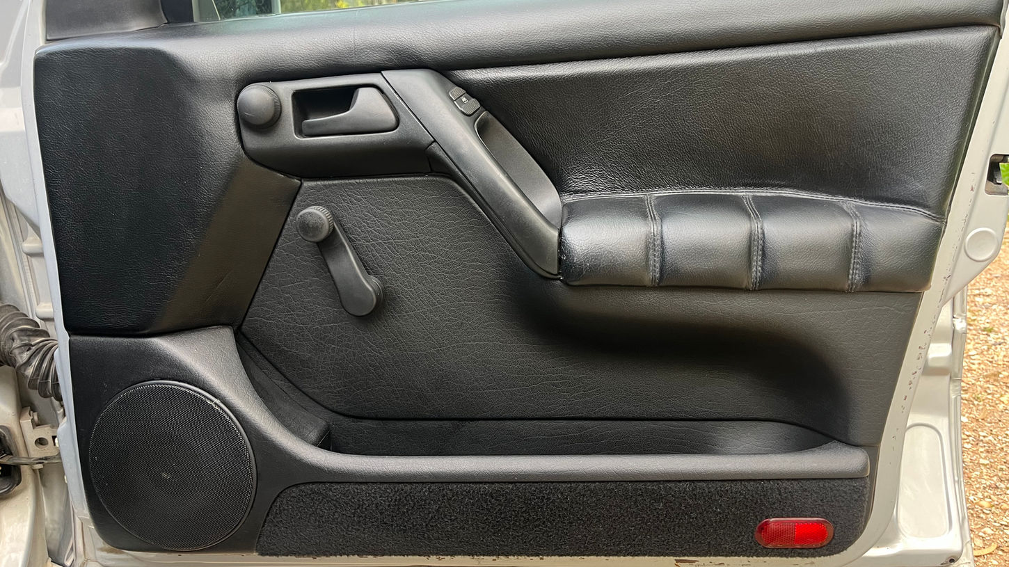 The exterior has been refinished with a full paint job, giving the silver bodywork a clean and uniform appearance. Period-inspired upgrades include ABT headlights, Hella smoked rear lights, and Cup-style mirrors, all of which contribute to a subtle yet purposeful look. The car sits on 17-inch JR wheels and benefits from a VR6-spec suspension setup with Bilstein components, providing an improved stance and handling while maintaining a cohesive OEM-plus aesthetic.