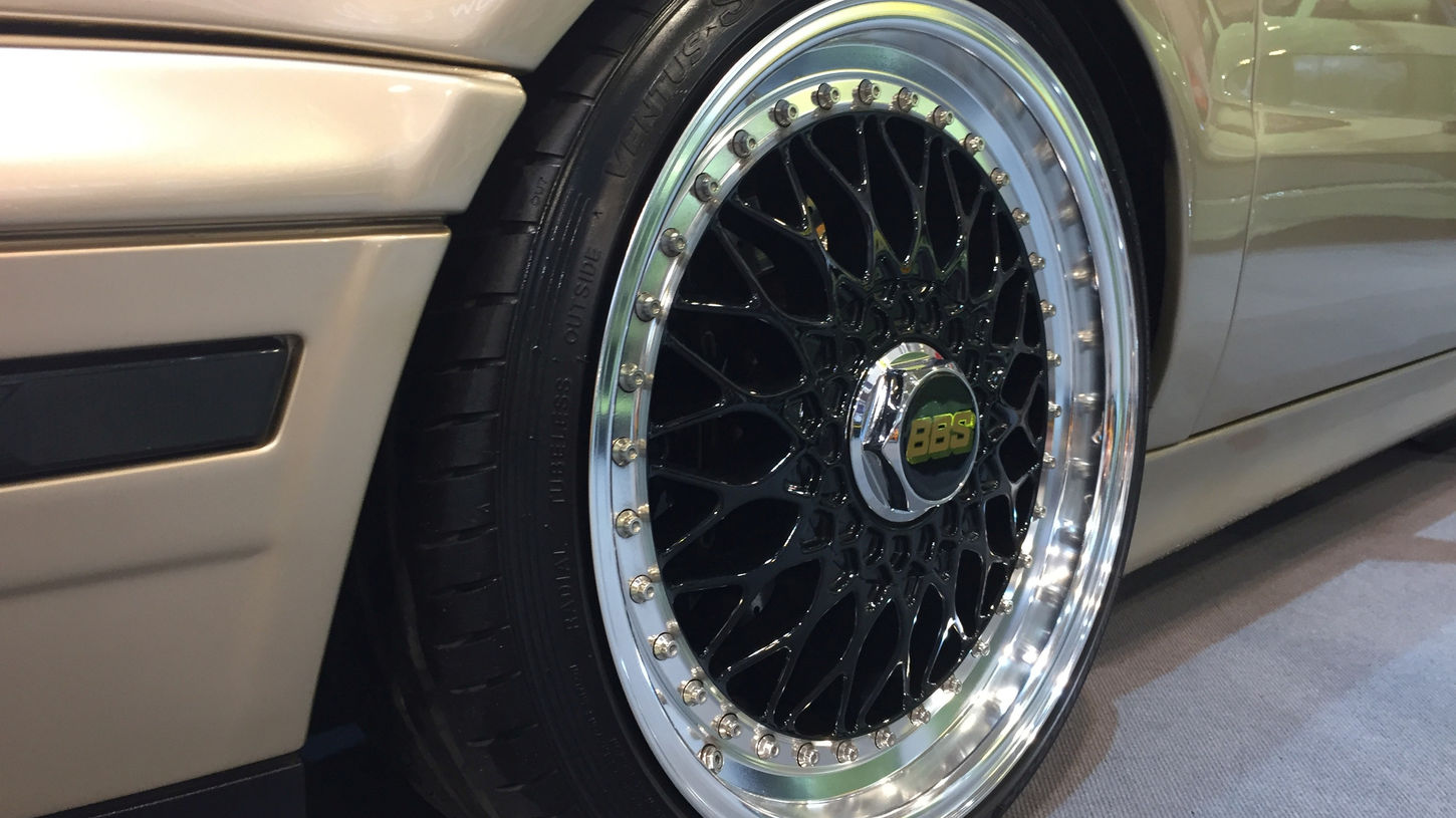 Wheels: Lenso BSX 7.5J x 17" ET35 wheels with custom BBS center caps and 195/40 R17 Hankook Ventus S1 Evo tires.