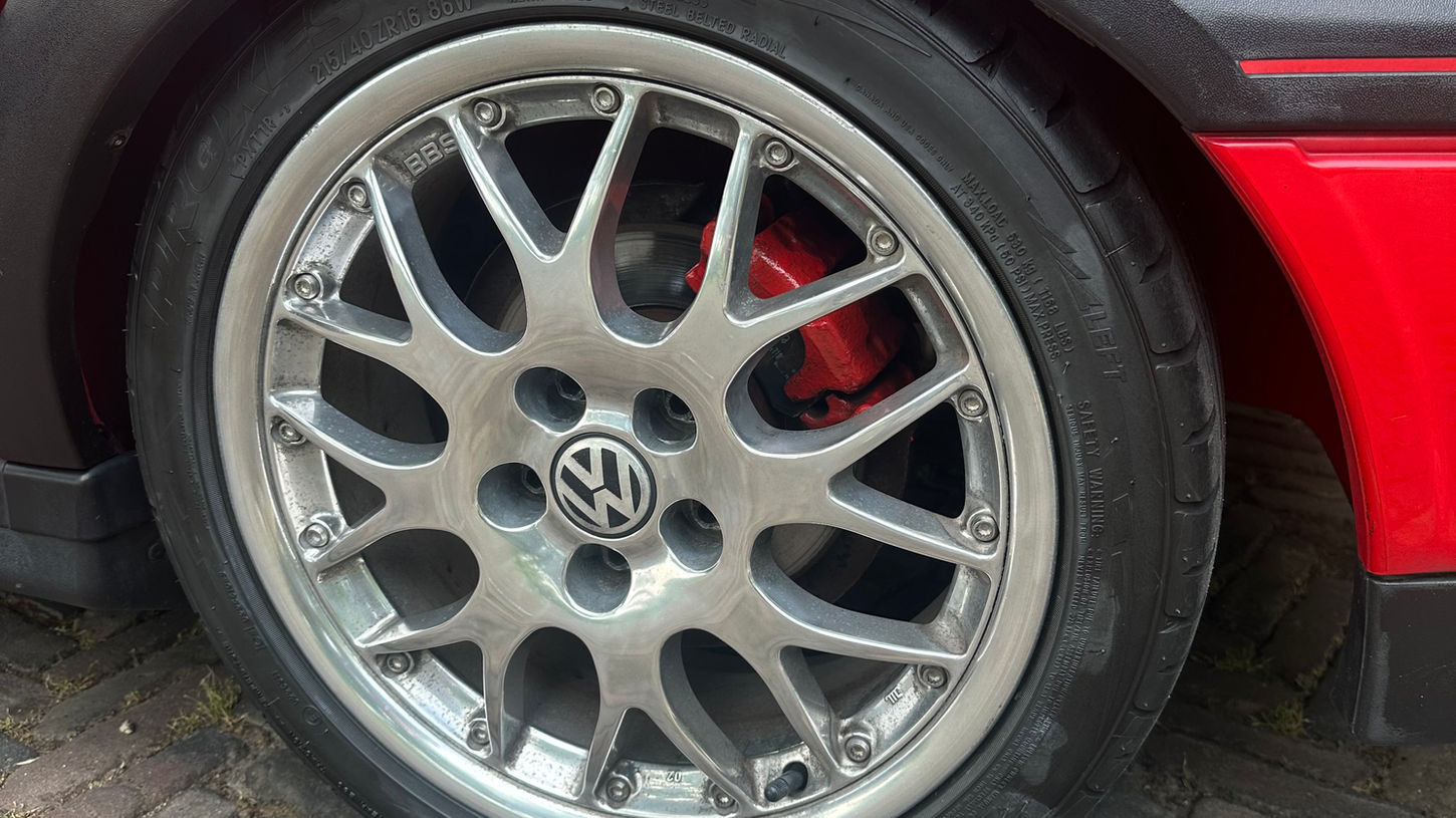 This GTI is equipped with air conditioning (with a new air conditioning pump), central locking (one key available), an MFA on-board computer, a height-adjustable steering wheel, front fog lights, electric windows, and electric mirrors. The car has been lowered using a TA Technix coilover set and features a stainless steel exhaust system from the catalytic converter.