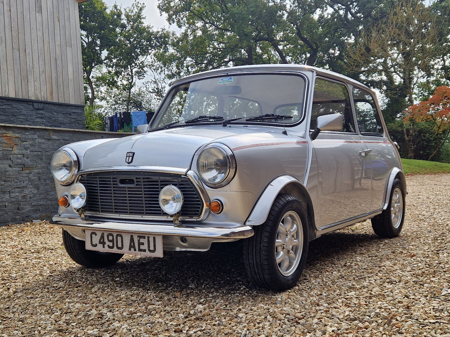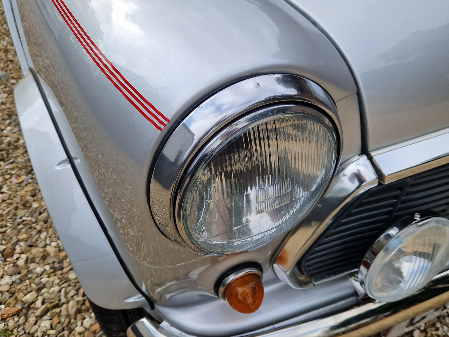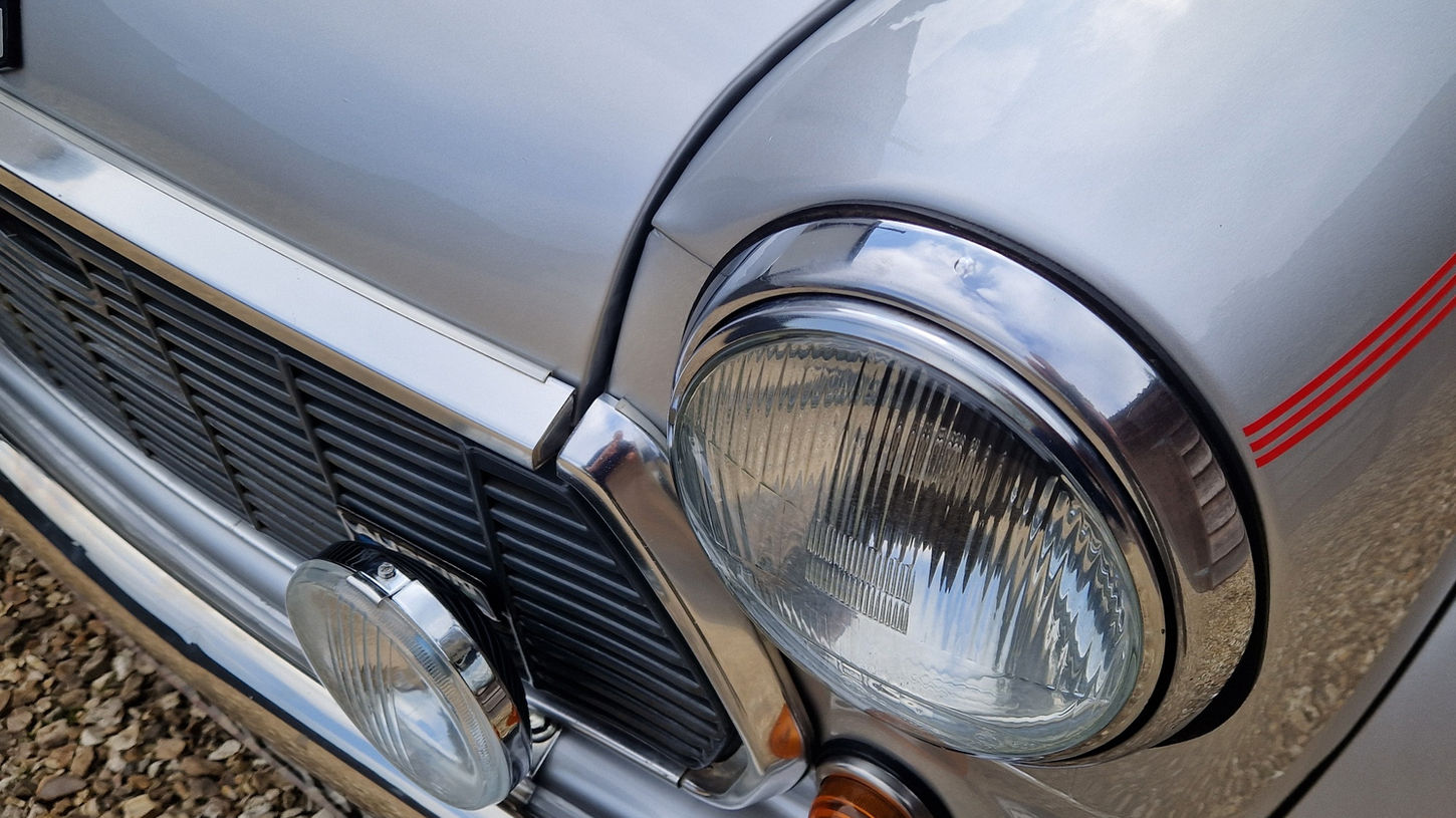 Mechanically, the car has been well taken care of, with recent work including a new Heritage rear subframe that has been wax-oiled for protection. The exhaust system and brake master cylinder have also been replaced as part of a recent service. The car sits on new wheels and tires, and the wheel arches and mirrors have been painted to match the silver exterior, giving the car a clean and cohesive look.