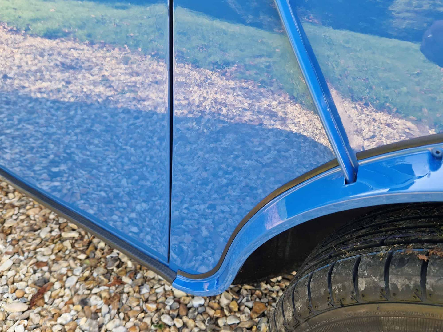 The Henley Blue paintwork is a true standout, complemented by color-matched wheel arches and a set of new wheels and tires that enhance its already eye-catching appeal. The interior has been tastefully re-trimmed, bringing a fresh and refined look to the cabin, perfectly balancing originality with subtle updates. The overall presentation of the car is stunning, with paintwork that gleams and attracts admiration wherever it goes.